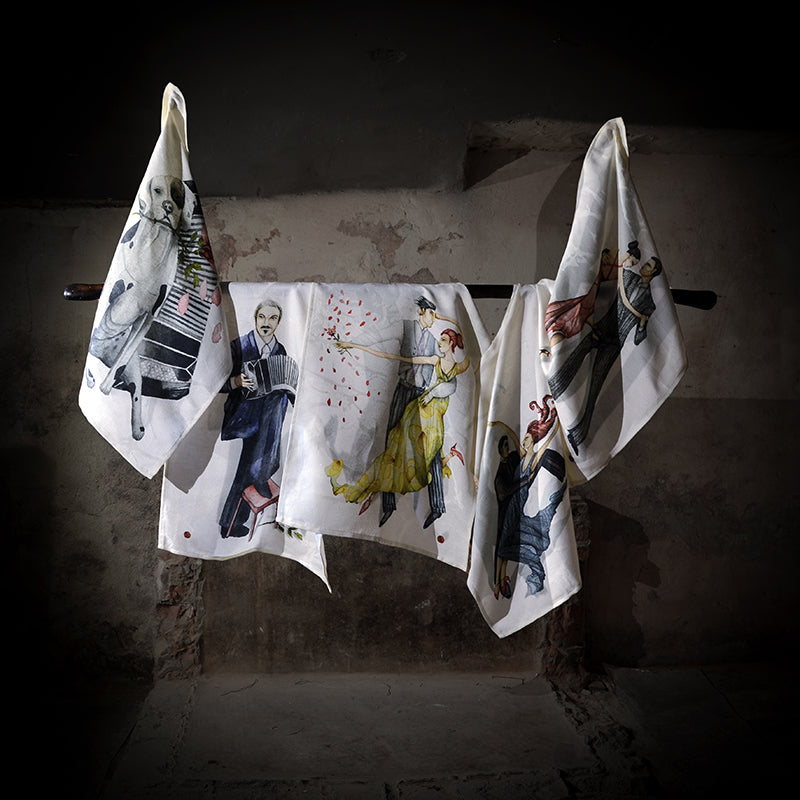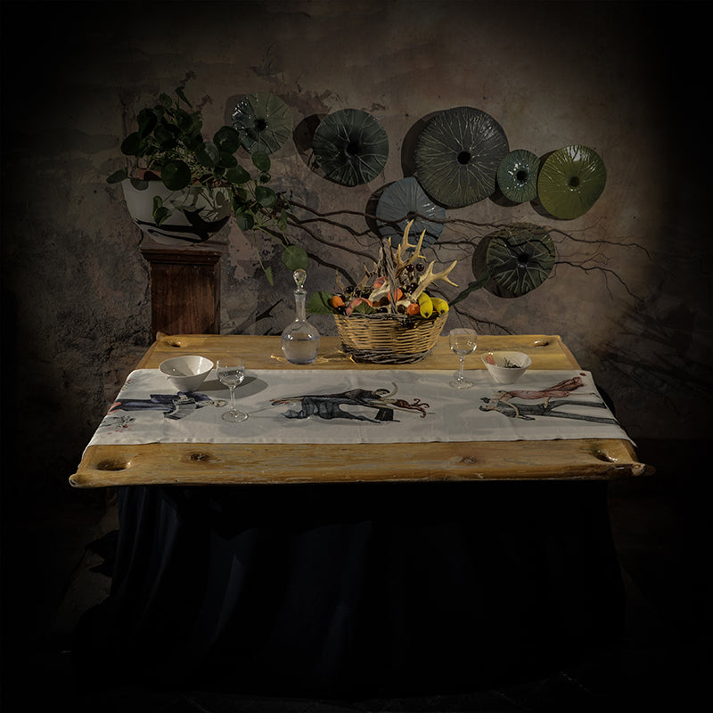 Quintaessenza rappresenta con questa fantasia l'esplosione di colore, lavorata, morbida con colori unici forti e brillanti. Il tessuto è un 50% Cotone e 50% Lino. Disponibile il runner di dimensioni 50x160 cm, ei canocacci 50x70 cm.