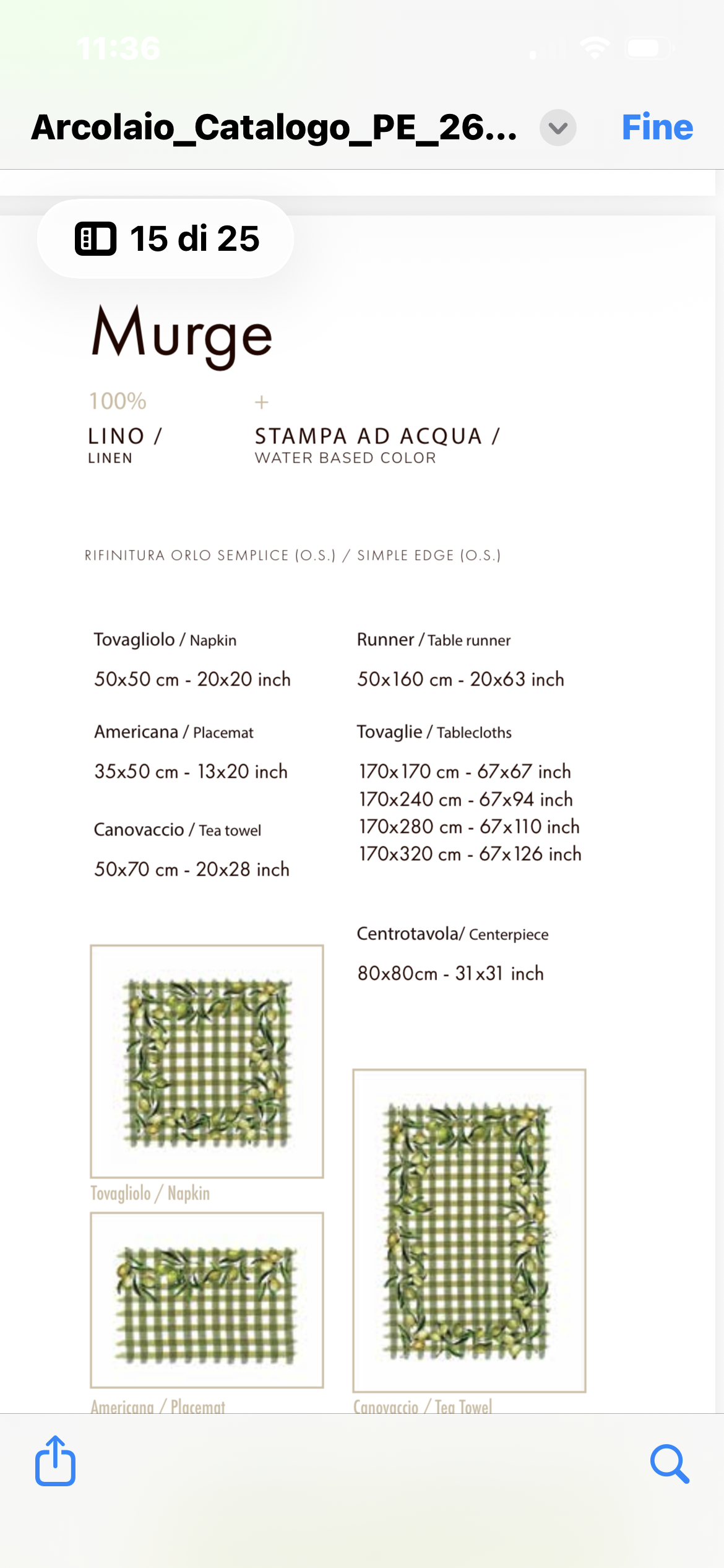 Scopri la nostra esclusiva linea di tovagliati in puro lino, caratterizzata da un affascinante motivo a quadri verde con olive. Perfetta per chi ama lo stile rustico e autentico, questa collezione combina eleganza e praticità. Il lino naturale garantisce durabilità e traspirabilità, ideale per la tavola di ogni giorno o per occasioni speciali. Ogni pezzo racconta la tradizione del Borgo, portando in casa vostra il calore e il fascino della campagna italiana. Trasforma la tua tavola con stile e semplicità.