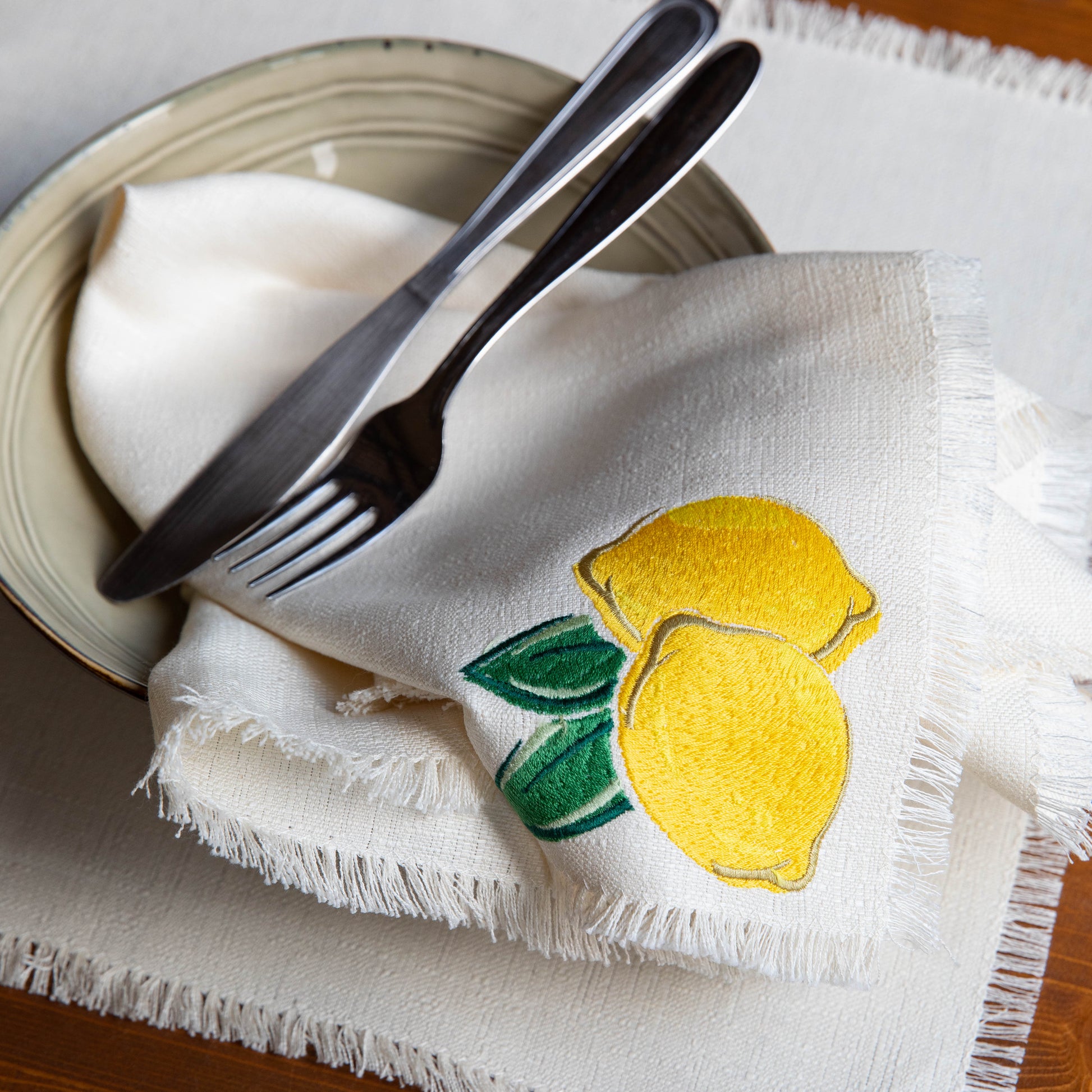 Dalla collezione Arcolaio tessile italiano, propongo le tovagliette con ricamo limone, dimensione 35x50 cm in lino con ricamo in rilievo. Le tovagliette sono rifinite per dare ancora più raffinatezza da un frangia.
