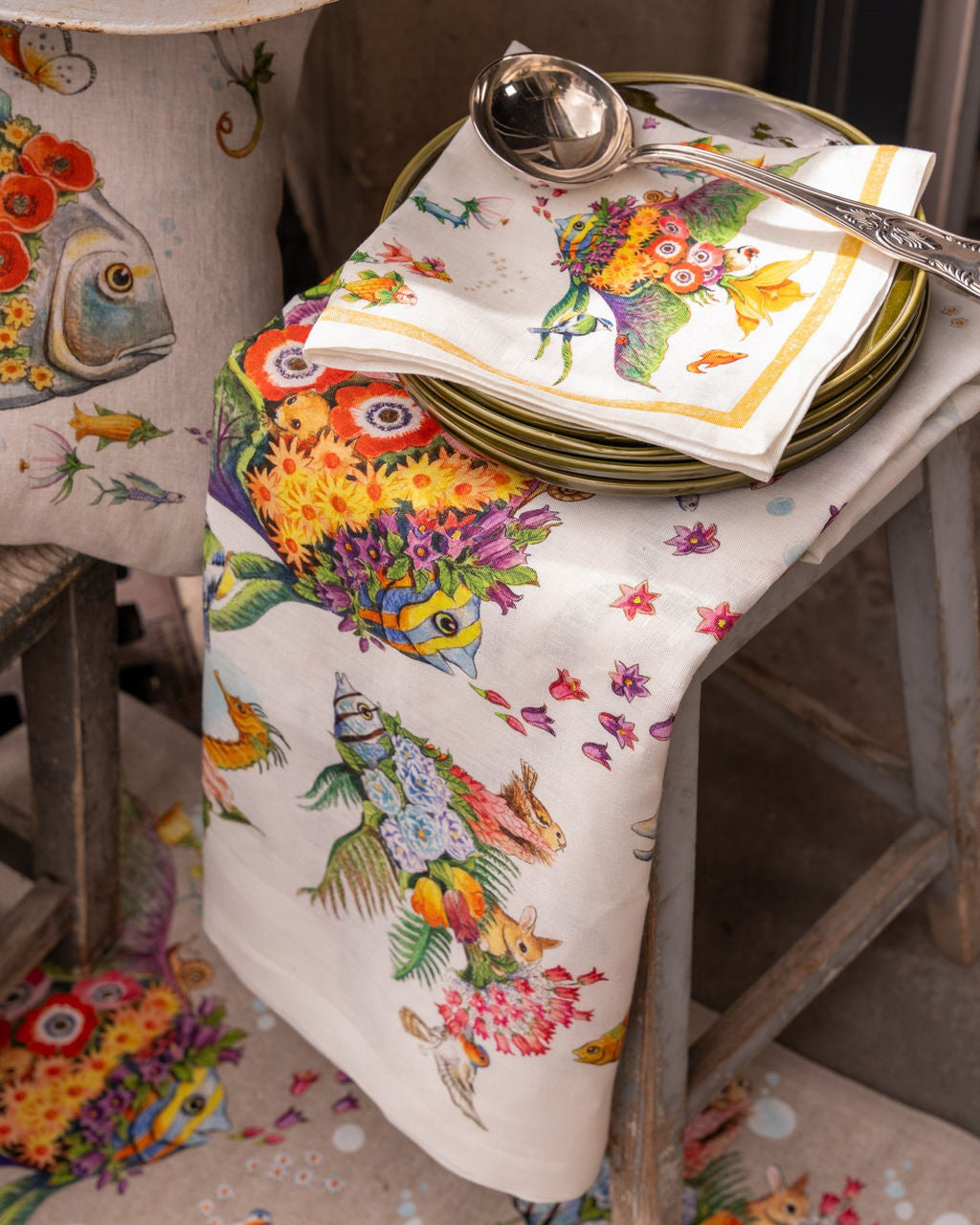 Il mezzero PESCIFLORA unisce la magia del mare e la delicatezza dei fiori in un omaggio all’estate e alla bellezza della tradizione mediterranea. Soffice e avvolgente, il mezzero copridivano PESCIFLORA è realizzato in puro lino, è perfetto per adornare gli arredi con dei colori vivaci e con uno stile onirico e fantasioso. Disponibile nelle seguenti misure:180x280 e 270x280 cm. Tessuto in lino 100%.