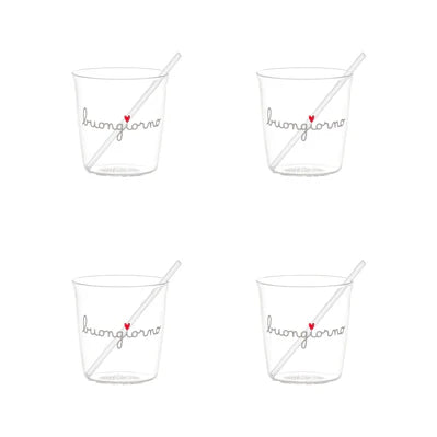 Set 4 bicchierini espresso in vetro borosilicato decoro espresso Buongiorno