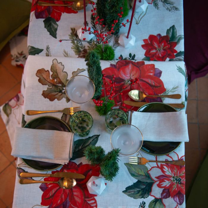 Tovaglia Etoile: la magia del Natale si posa sulla tua tavola! Realizzata in pregiato lino toscano, questa tovaglia cattura l'eleganza delle stelle con un design raffinato e senza tempo. Perfetta per trasformare le tue cene festive in momenti indimenticabili, il lino naturale garantisce morbidezza e durabilità. Che sia per il pranzo di Natale o per cene invernali speciali, questa tovaglia aggiunge quel tocco di classe che fa la differenza. Tessitura toscana autentica, bellezza garantita.