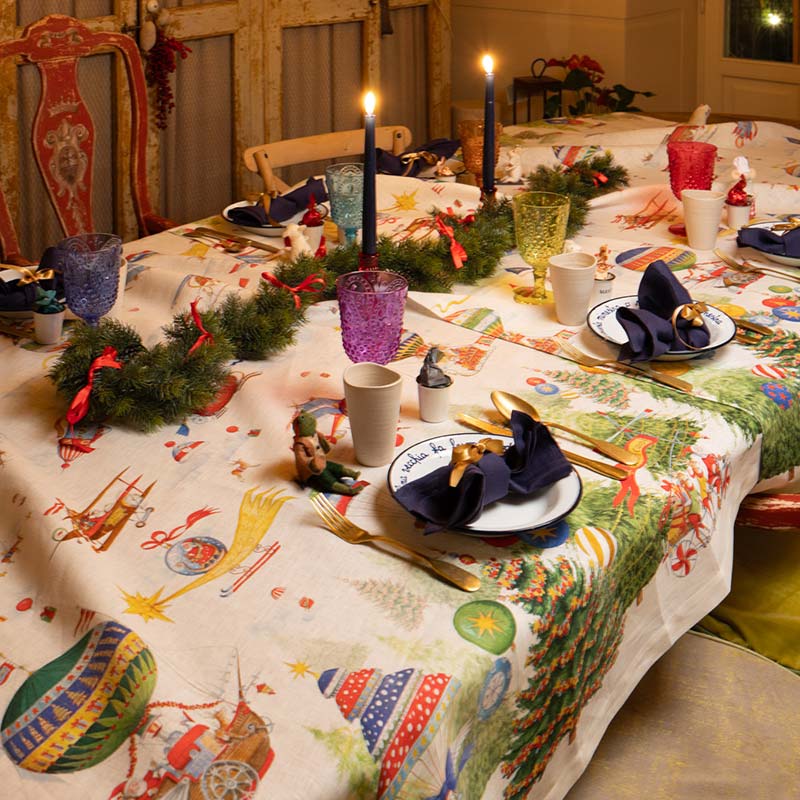 Porta un tocco di magia natalizia alla tua tavola con il runner di lino "Air Christmas" della Collezione Natale di Tessitura Toscana Telerie. Decorato con graziose mongolfiere che sembrano sognare di volare tra le stelle, questo runner unisce eleganza naturale e fantasia festiva. Perfetto per animare ogni pranzo o cena delle feste con un'atmosfera calda e allegra, aggiunge un dettaglio speciale senza rinunciare alla qualità del lino made in Italy. Rendi ogni momento a tavola un piccolo viaggio sospeso nell'aria!